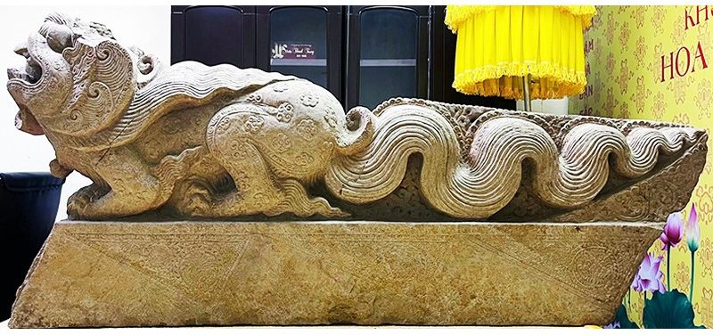 Sấu đá – thành bậc thời Lý ở Hoa Lâm Viên đang được lưu giữ tại chùa Phúc Lâm – Đông Anh, Hà Nội. Ảnh: PGS Đặng Hồng Sơn