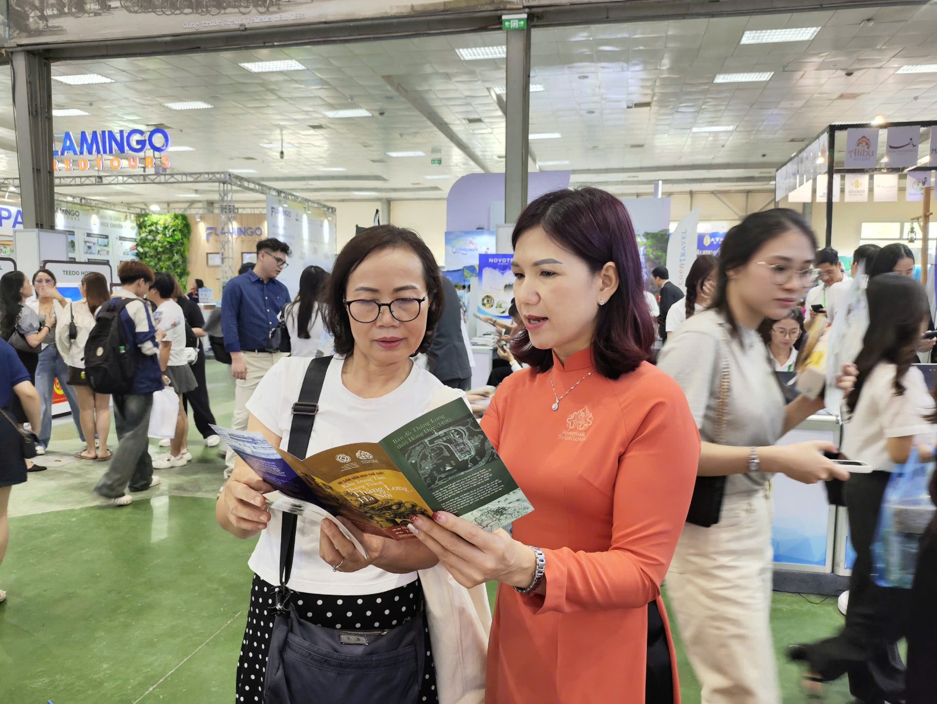 Ngay từ sáng sớm, khuôn viên hội chợ đã nhộn nhịp dòng người tham quan. Các gian hàng được thiết kế công phu, đậm bản sắc vùng miền, tạo nên một không gian đa sắc màu văn hóa. Trong dòng chảy ấy, gian trưng bày của Trung tâm Bảo tồn Di sản Thăng Long – Hà Nội nổi bật với cách tiếp cận bài bản, giàu chiều sâu, mang đậm dấu ấn của Hoàng thành Thăng Long – Di sản Văn hóa Thế giới. Không ồn ào phô trương, gian hàng của Trung tâm lựa chọn hướng đi truyền thống nhưng hiệu quả, lấy giá trị cốt lõi của di sản làm trung tâm. Những hình ảnh tư liệu quý, mô hình kiến trúc, sản phẩm trải nghiệm số, cùng các ấn phẩm giới thiệu được bố trí hài hòa, giúp du khách có cái nhìn tổng thể về chiều sâu lịch sử của kinh đô Thăng Long xưa. Đặc biệt, các chương trình tham quan chuyên đề, tour trải nghiệm đêm, hoạt động tái hiện nghi lễ cung đình… được giới thiệu như những sản phẩm du lịch đặc sắc, giàu bản sắc. Không chỉ dừng ở những sản phẩm trưng bày tĩnh, Các cán bộ của di sản Hoàng thành Thăng Long còn tạo sự tương tác trực tiếp với khách tham quan. Nhiều du khách quốc tế tỏ ra thích thú khi được nghe giới thiệu về trục trung tâm Hoàng thành, các lớp trầm tích khảo cổ, hay những câu chuyện gắn với các triều đại Lý – Trần – Lê. Những giá trị tưởng như khô khan của khảo cổ học, lịch sử, qua cách dẫn dắt khéo léo, trở nên sống động, dễ tiếp cận.