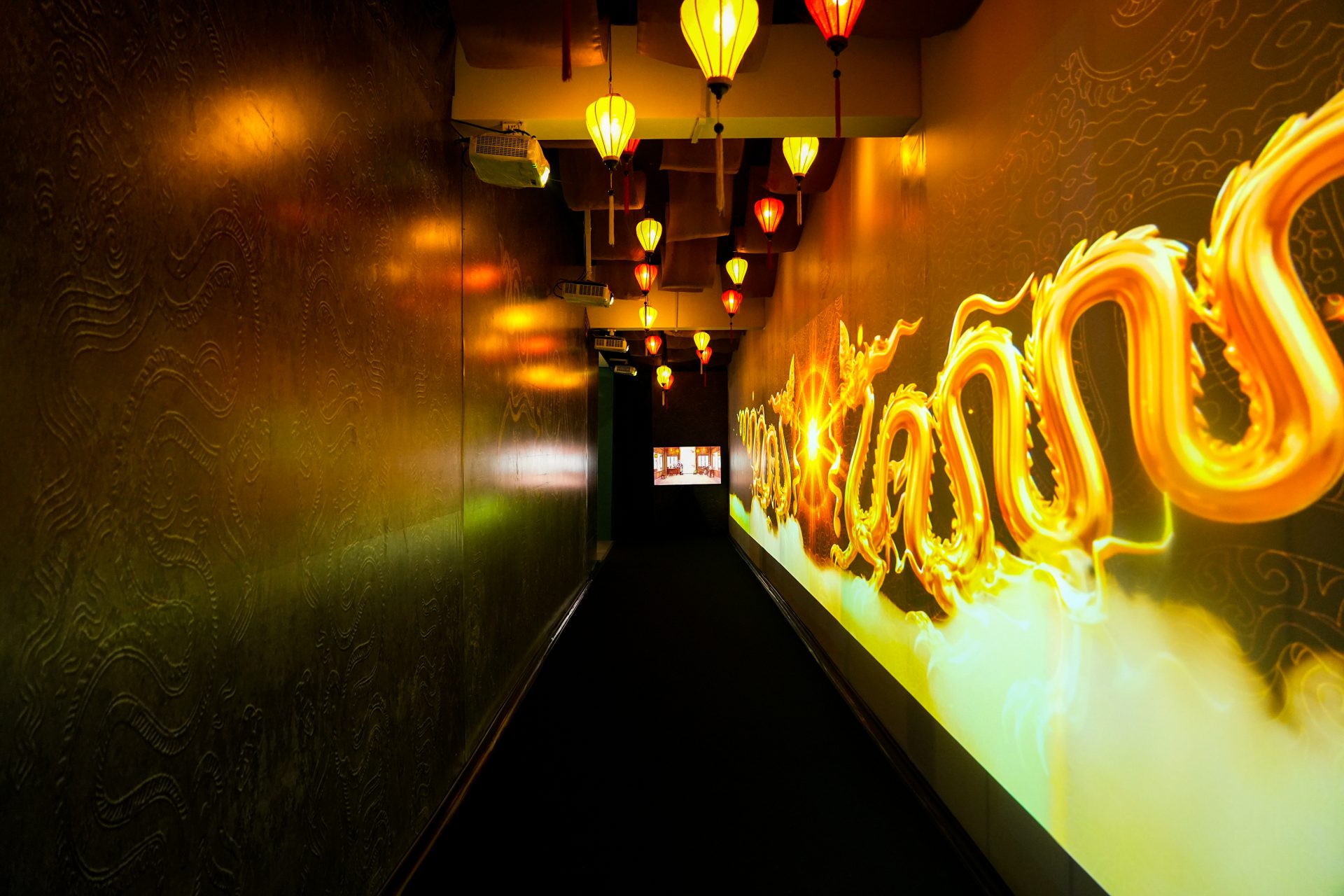Sử dụng kỹ thuật đồ họa chuyển động (animation) kết hợp cùng hệ thống cảm biến thông minh, khu vực này tái hiện trọn vẹn sự bề thế của kinh thành Thăng Long xưa. Từ những ngôi chùa tháp uy nghiêm đến cảnh sinh hoạt cung đình, tất cả hiện lên sống động với hiệu ứng khói mờ và âm hưởng nhạc lễ dân tộc. Đặc biệt, hệ thống đèn bối cảnh có khả năng tương tác thời gian thực: khi khách tham quan tiến lại gần, ánh sáng sẽ tự động thay đổi, tạo chiều sâu không gian và cảm giác chân thực như đang dạo bước giữa hoàng cung thế kỷ XI.
