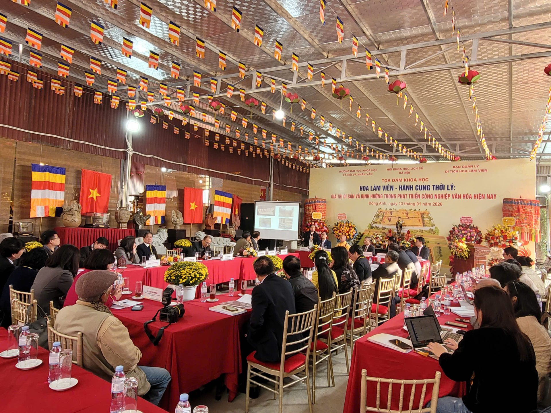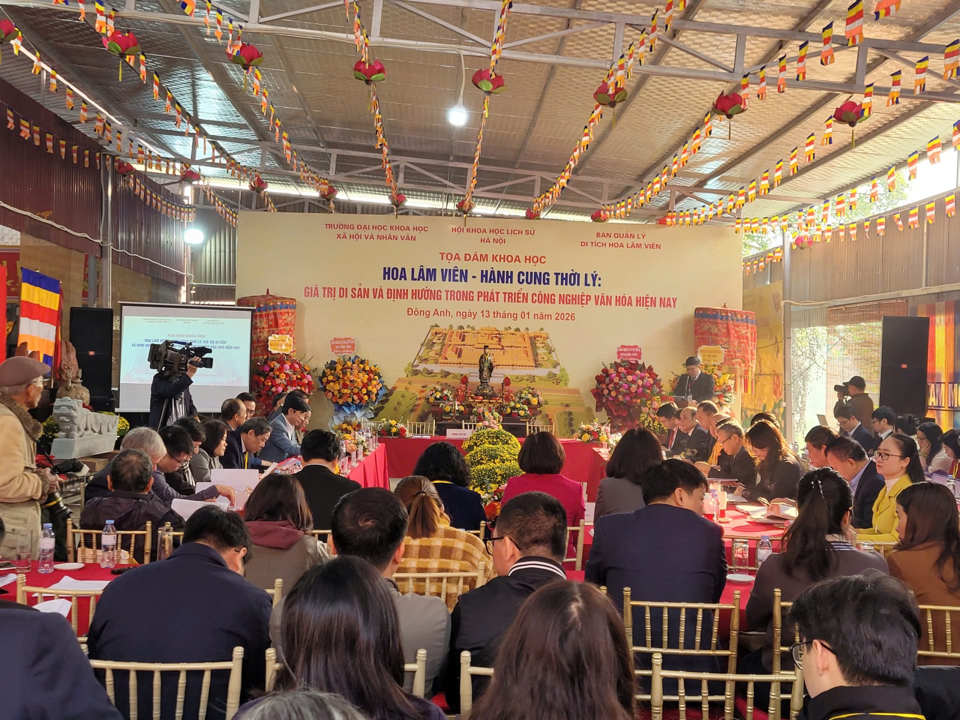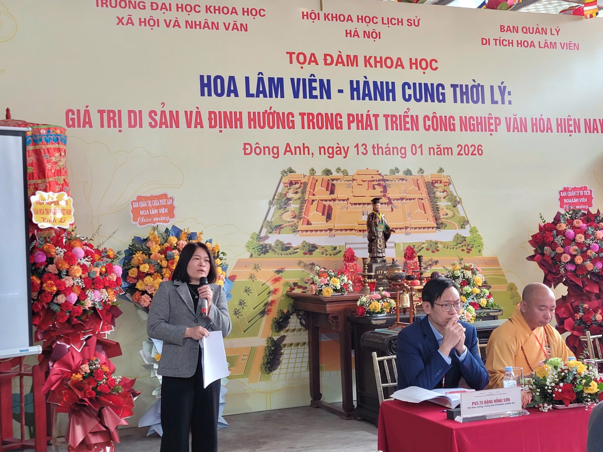 Ngày 13/01/2026, tại di tích Hoa Lâm Viên (xã Đông Anh, thành phố Hà Nội), Trường Đại học Khoa học Xã hội và Nhân văn (ĐHQGHN), Hội Khoa học Lịch sử thành phố Hà Nội và Ban Quản lý Di tích Hoa Lâm Viên đã phối hợp tổ chức Tọa đàm khoa học “Hoa Lâm Viên – Hành cung thời Lý: Giá trị di sản và định hướng trong phát triển công nghiệp văn hóa hiện nay”. Tọa đàm diễn ra trong bối cảnh cả nước hướng tới Đại hội Đảng toàn quốc lần thứ XIV, đồng thời đặt ra yêu cầu cấp thiết về nhận diện, bảo tồn và phát huy các giá trị di sản văn hóa gắn với phát triển bền vững, đặc biệt là phát triển công nghiệp văn hóa của Thủ đô Hà Nội.